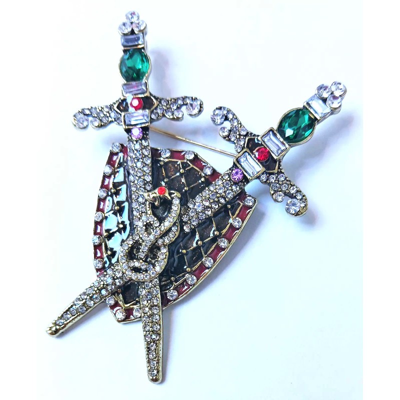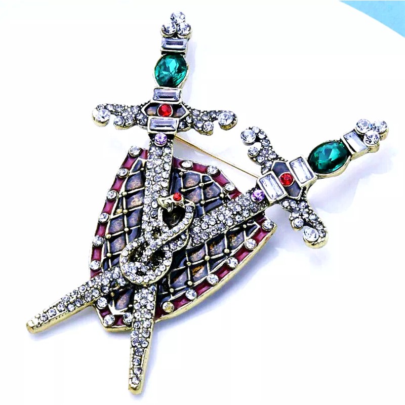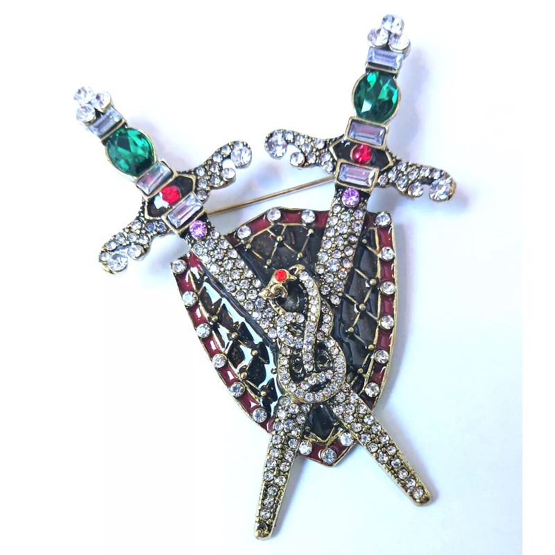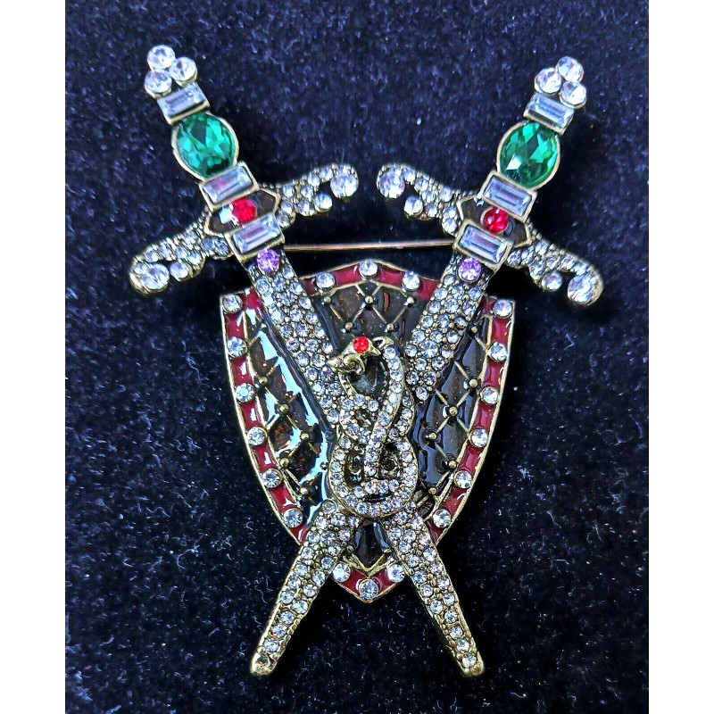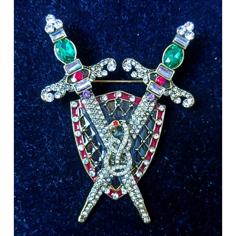 Unbranded BIG Game of Thones SWORD & SHIELD Medieval Crest SNAKE Jewel Dragon Brooch