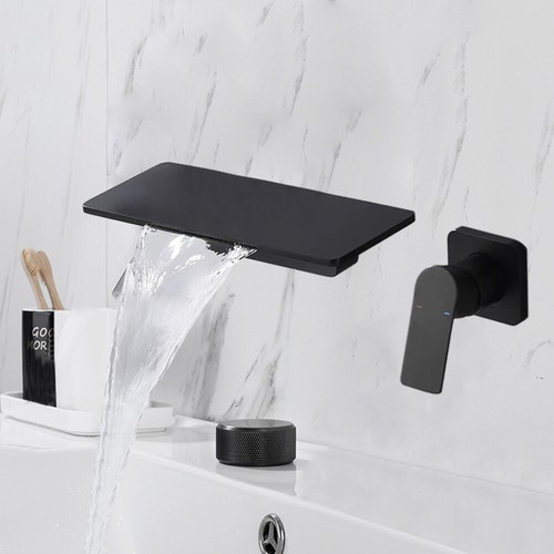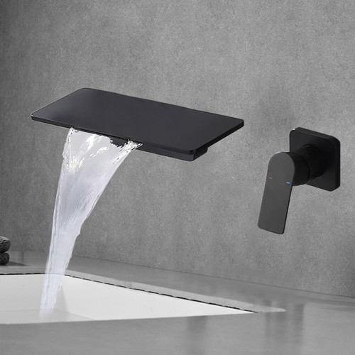 Unbranded Black Bathroom Vanity Sink Faucet Waterfall Single Handle Vessel Mixer Tap Matte