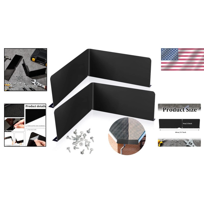 Unbranded Black Bent Gutter Splash Guards with Screws - Effective Water Diverter Set