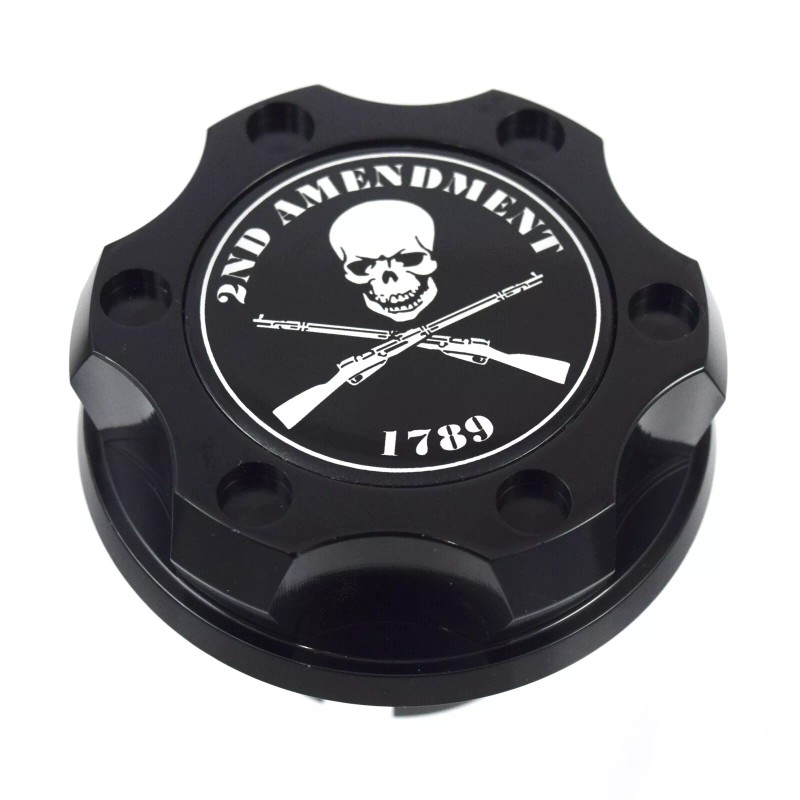 Unbranded Black Billet Engine Oil Cap Filler 2nd Amendment Emblem For Ford 1/4 Turn Lock