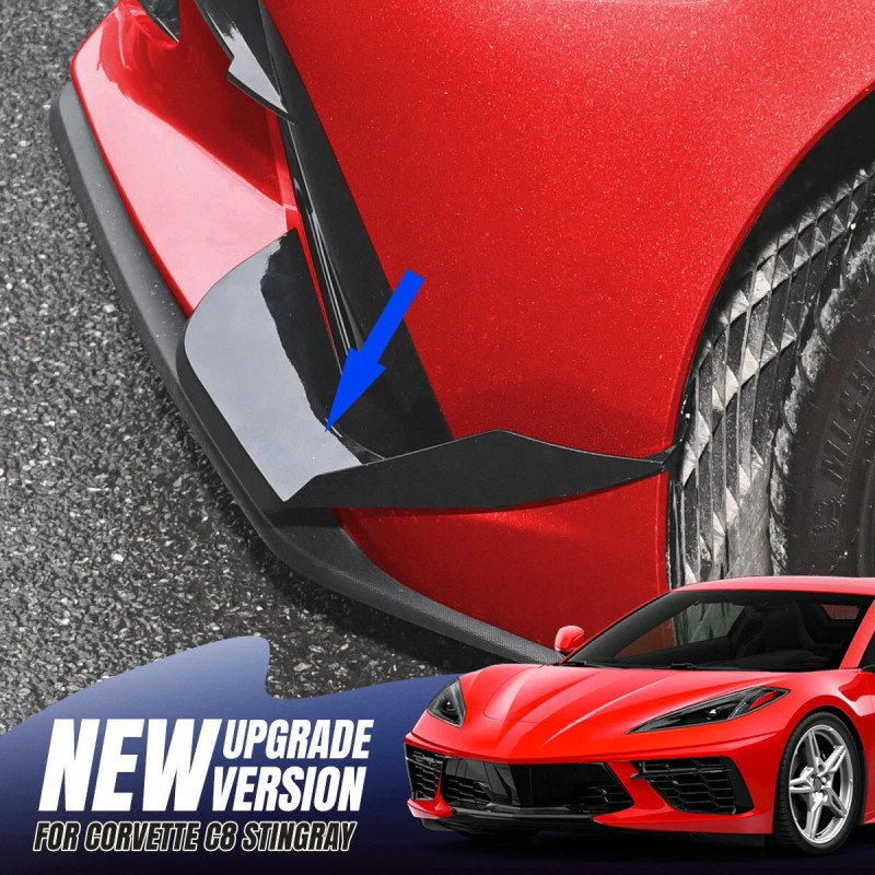Unbranded Black Flash Front Bumper Side Canards Fin Splitter For Corvette C8 ...