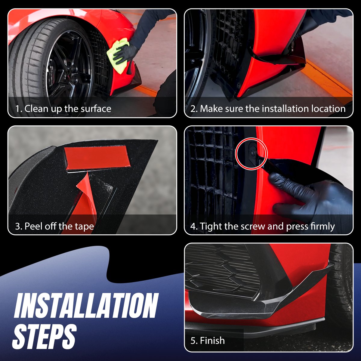 4.Easy to install:Back of side Canards has adhesive which is very easy to install.Clean surfaces before installation;In cold weather, you can use a hot hair dryer to properly heat the adhesive, which will make it easier to stick firmly.