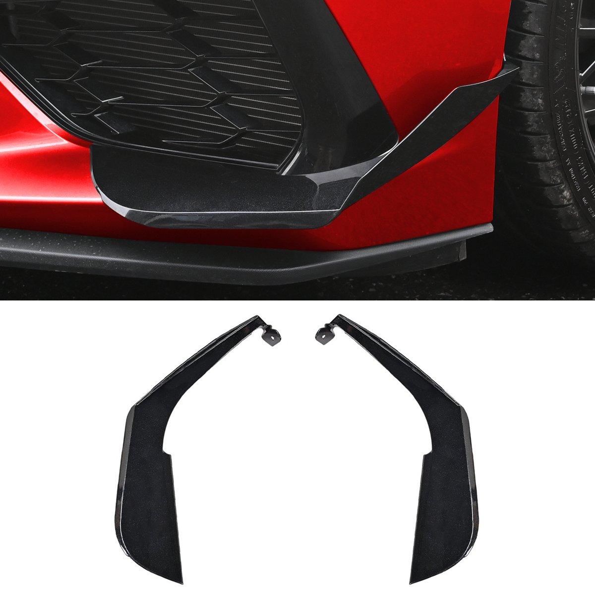 Unbranded Black Flash Front Bumper Side Canards Fin Splitter For Corvette C8 Z51 2020-24