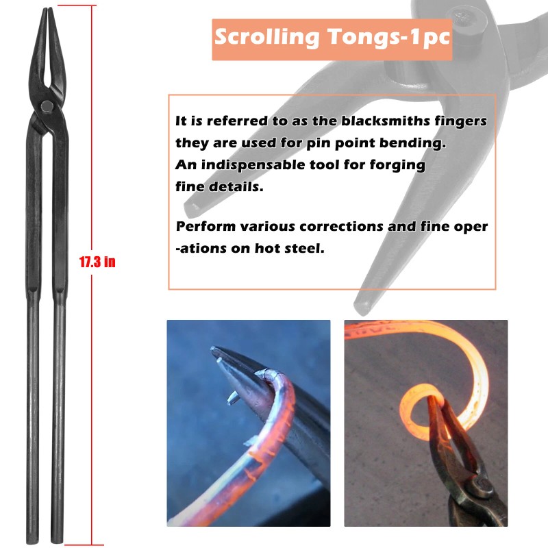 - Scrolling Tongs--Used for pin point bending, making and fixing the scrolls without damaging the surface. It's an indispensable tool for forging fine details.