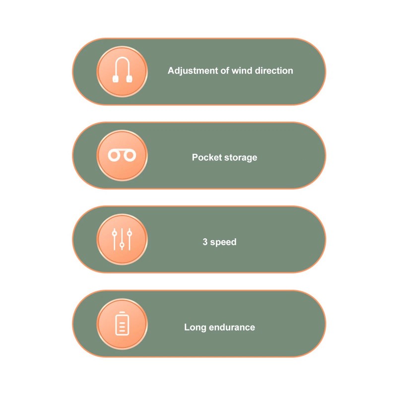 4. AROMATHERAPY MACHINE: Wearable fan adopts innovative structural design, which is both a fan and a portable aromatherapy machine, you can add essential oils to make the fan emit fragrance.