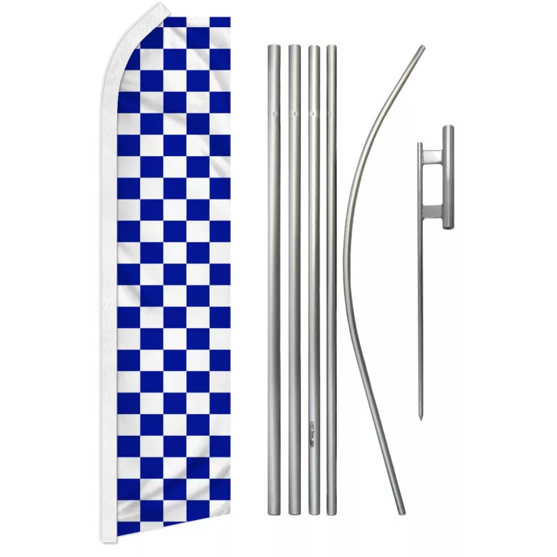 Unbranded Blue & White Checkered Advertising Swooper Feather Flutter Flag Pole Kit