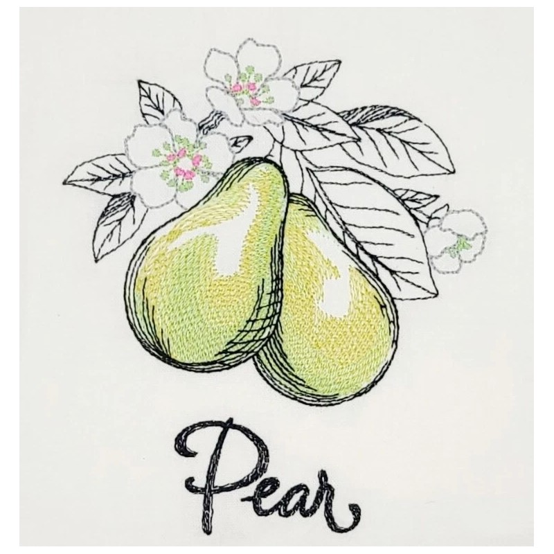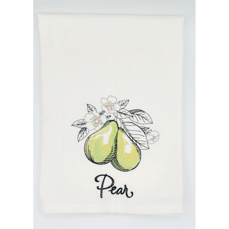 Unbranded BOTANICAL FRUITS AND FLOWERS-PEARS MACHINE EMBROIDERED FLOUR SACK DISH TOWEL