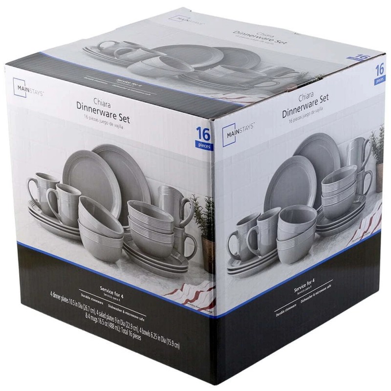 Add a sleek style to your table with the Chiara 16-Piece Dinnerware Set. This delightful dinner set provides service for four and is crafted of 100% stoneware with a gorgeous gloss finish. The set includes four dinner, plates, four salad plates, four bowls, and four mugs. Perfect for casual as well as formal meals enjoyed with your family, friends, and other guests, the Chiara 16-Piece Dinnerware Set is dishwasher safe to make it easy to care for and microwave safe for easy re-heating (pieces may become hot in microwave).