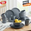 Unbranded Bowl & Plate &Mug Set 16-Piece Stoneware Gray Dinnerware Set Dishwasher-Saf