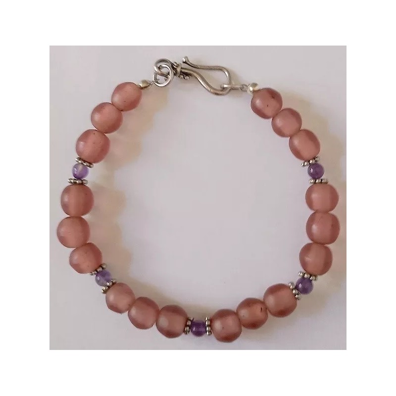 Bracelet - Below wholesale. Round light purple resin beads with 5 3 mm amethyst rounds and sterling spacer beads. Stored and forgotten for 25 years. The clasps and spacers are Balinese sterling silver. Just under 8 in. Old beads, and selling at an amazing price for resale.