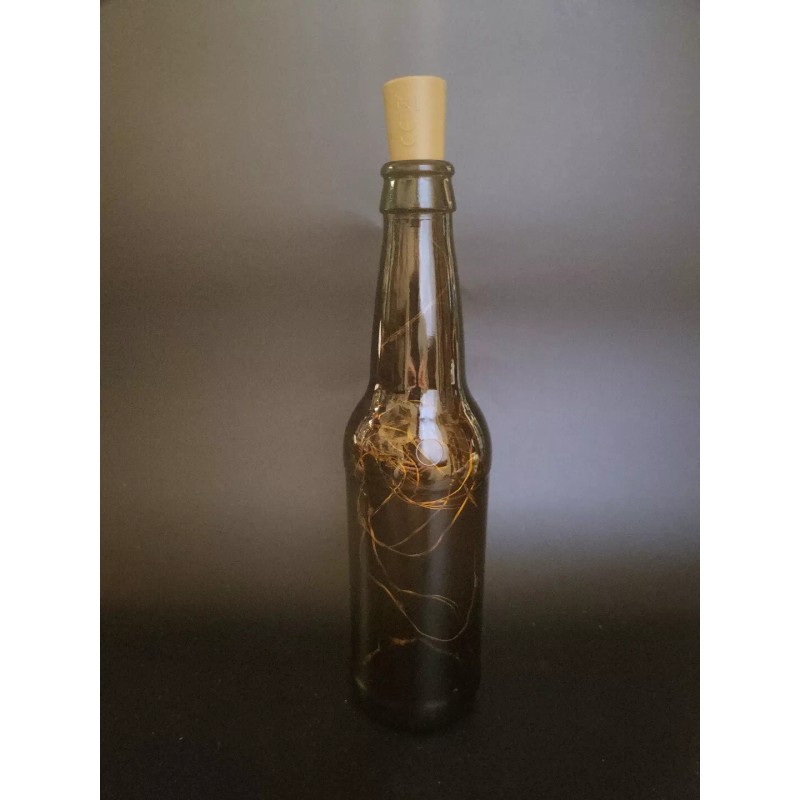 Glass Bottle Light made with repurposed 12 oz bottle and battery-operated cork light. Perfect for lamp lover, glass bottle fan, man cave, home bar decor, night light, garden decor, etc.