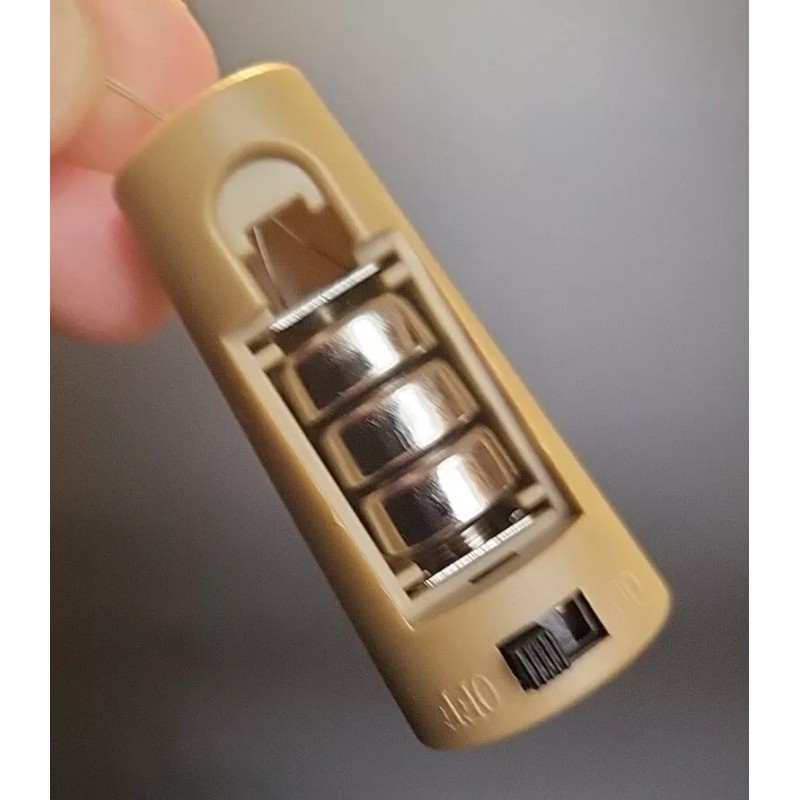 Cork light uses 3 LR44 batteries, which are included in light, plus a set of 3 replacement batteries are included as well.