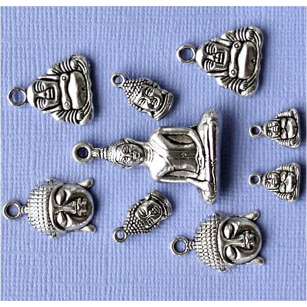 Unbranded Buddha Charm Collection Antique Silver Tone 9 Charms - COL183