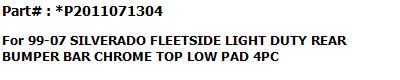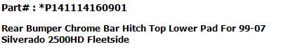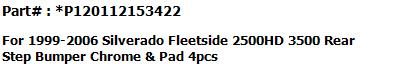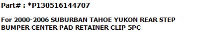 For 00-06 CHEVY SUBURBAN / 00-06 TAHOE / 00-06 GMC YUKON (except Denali) / 00-06 YUKON XL (except Denali) REAR STEP BUMPER TOP PAD LH=DRIVER SIDE