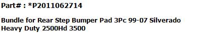 For 00-06 CHEVY SUBURBAN / 00-06 TAHOE / 00-06 GMC YUKON (except Denali) / 00-06 YUKON XL (except Denali) REAR STEP BUMPER TOP PAD RH=PASSENGER SIDE