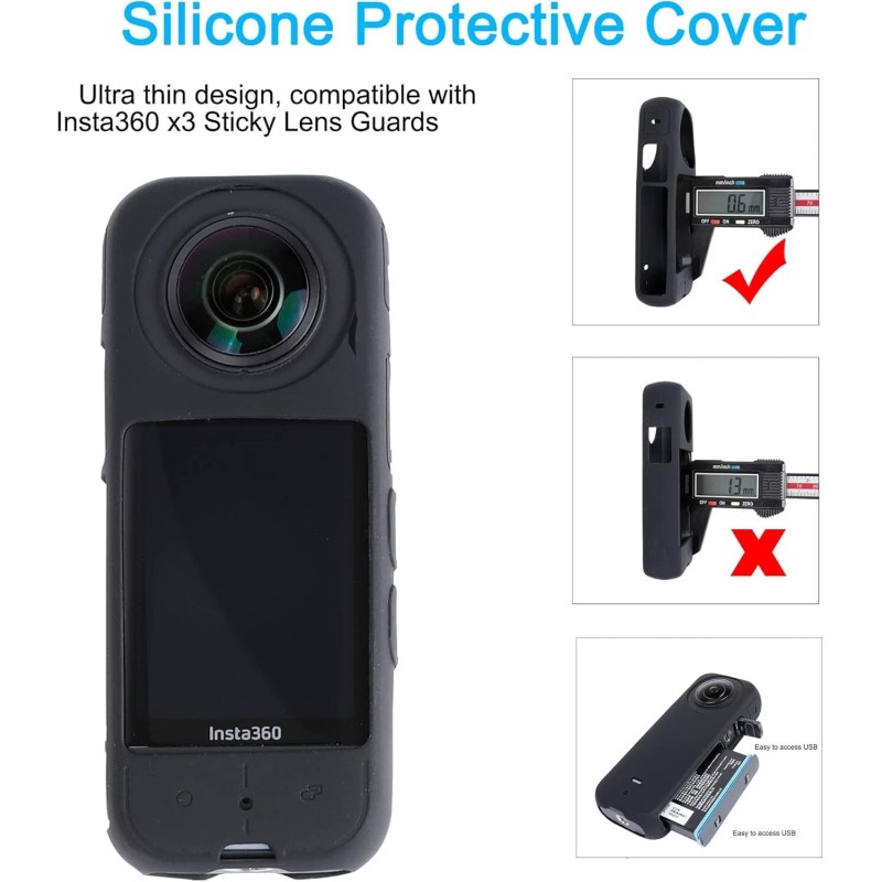 - Ultra-thin silicone protective case compatible with Sticky Lens Guard, no dark edges, and does not interfere with battery/microphone.