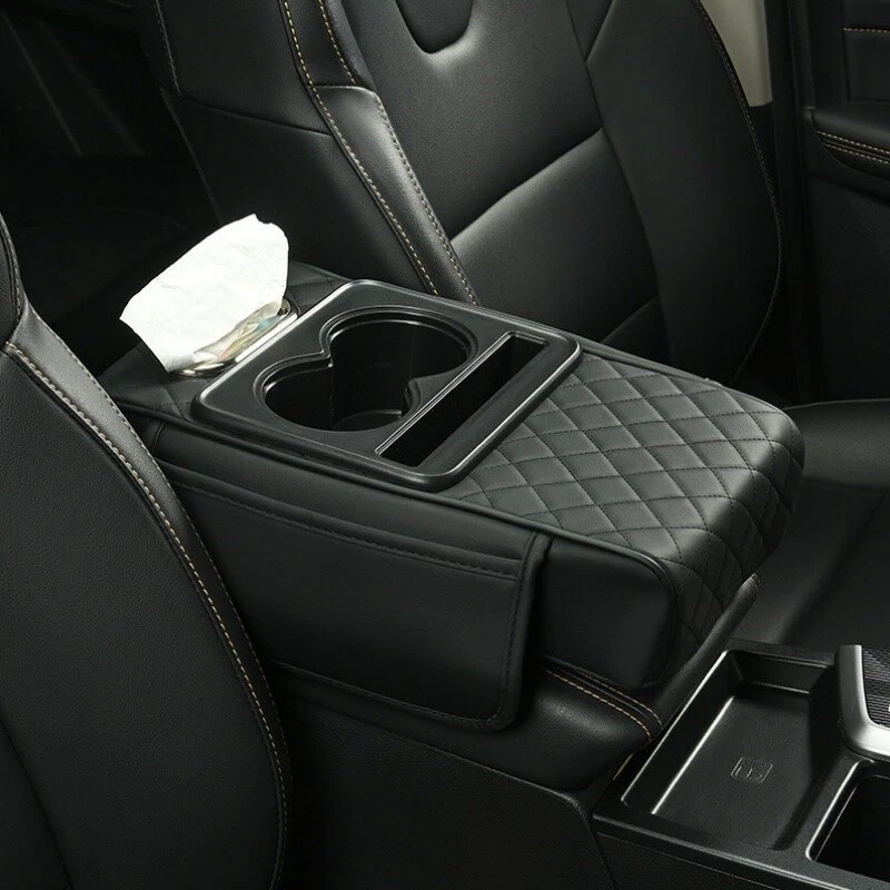 Unbranded Car Armrest Cushion 5-in-1 Center Console Cover with Cup Holder Tissue Box Slot