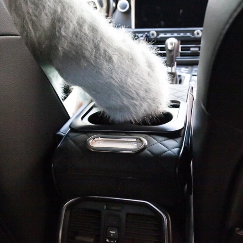 Multi-functional design: our car console covers is multi-functional, tissue bag (6.3*2.7*2.7inch), two side pockets (7.8*3.1inch), 2 cup holders (2.8inch diameter each), and also gives you a place to relax your arms.