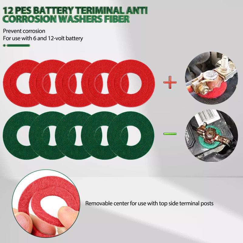 ✨Value Pack: Comes with 10 pieces battery anti-corrosion washers(5 red & 5 green) and 2pcs Battery Terminal Cleaning Brush.