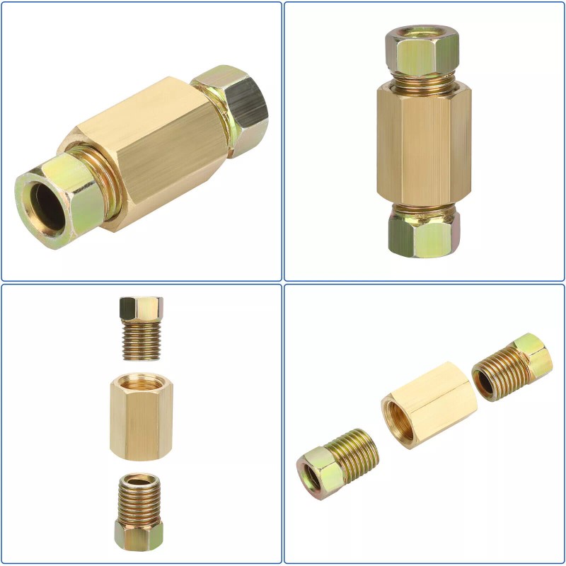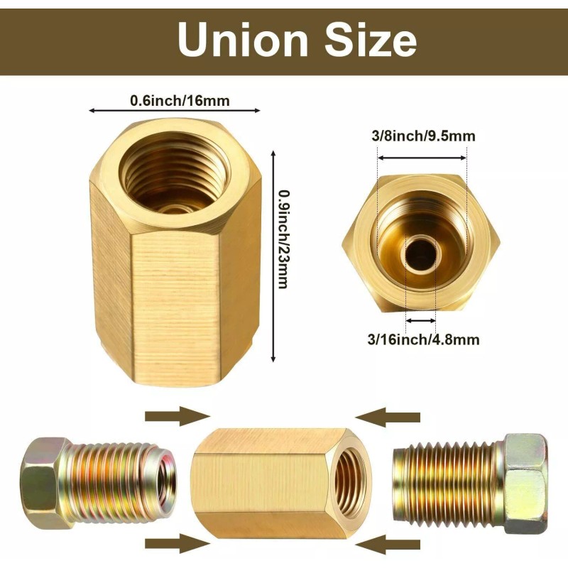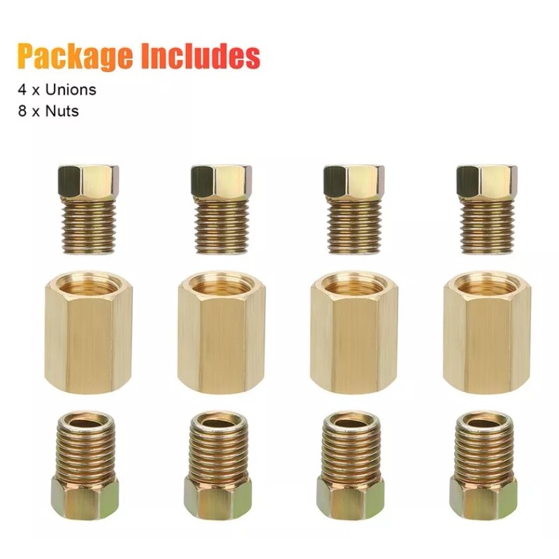 - Size: Both the unions and nuts are metric 1/4" Tube 7/16-24 Threads (standard 1/4" tube fitting size), all brake line fittings are made of quality brass to prevent rust and plated for corrosion resistance.
