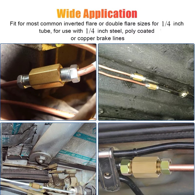- Fit for most common inverted flare or double flare sizes for 1/4" Tube for use with 1/4inch steel, poly coated or copper brake lines.