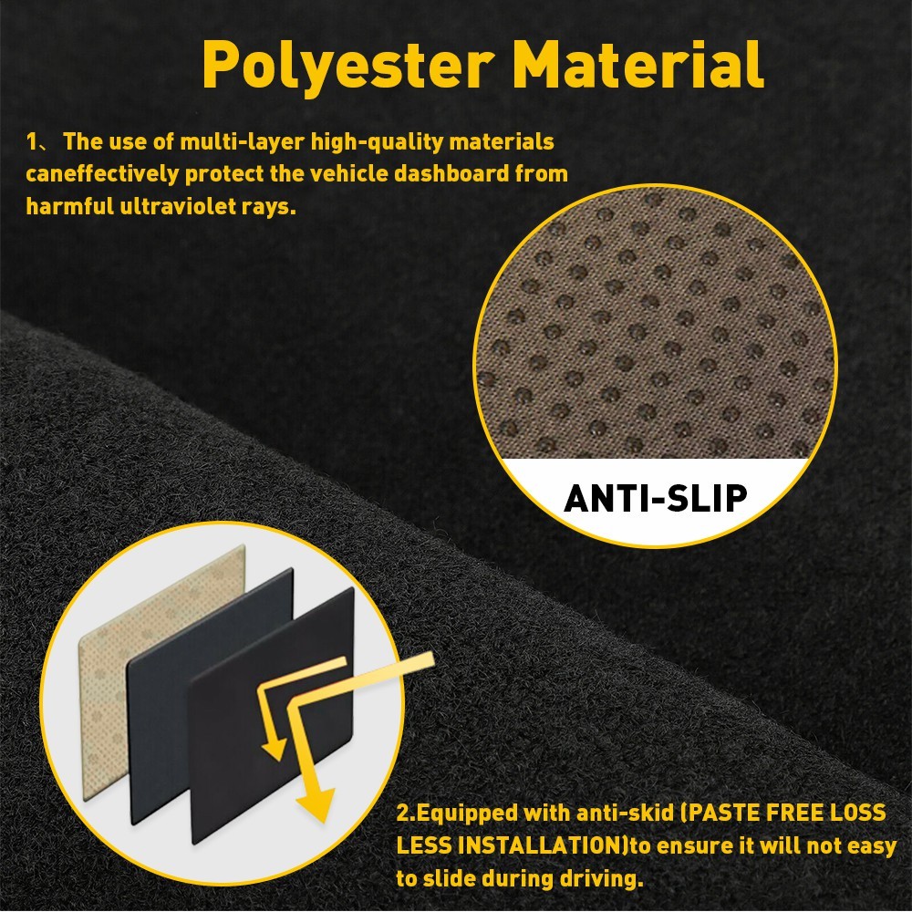 Features: *Shading function: Prevent sunlight refraction and increase brightness of front windshield. *Sunshade function: Minimize such ultraviolet radiation or sunlight reflection damage, making your driving safer and more comfortable. *Anti-slip fucntion: The anti-skid silica gel on the bottom is designed to ensure the mat is not slide easily during driving. *Great protection: Protecting the Dashboard surface from scratches, cracks and warping. *Superior material: Polyester material is used on mat surface which is quite durable ,elastic and without deformation and pilling. *Perfect fit: With its well-cut shape, it will line up with your car in all the right spots. Easy installed and No modification needed.