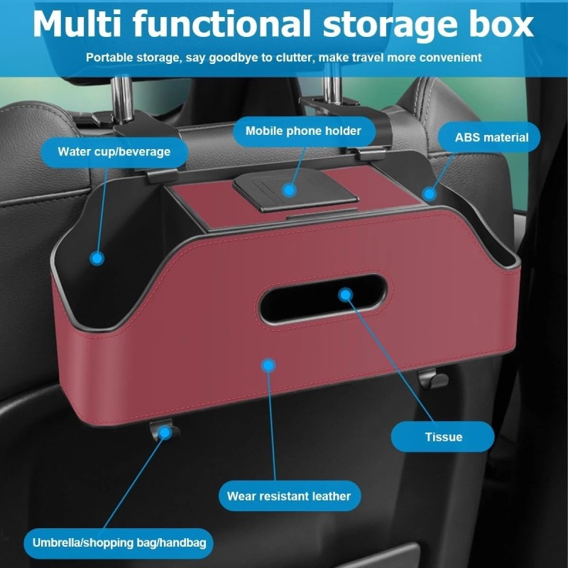- 【Easy to Install】: Our product uses direct snap mounting, which is very easy to install. You don't need to disassemble the headrest or use other tools, you can assemble it by hand. First, you should snap the long hooks onto the edge of the storage box. Next, you need to push the hooks inward slowly to adjust to the proper headrest spacing. Finally, you need to just hang it directly on the headrest bar. Its overall design is sleek and does not hurt your hands or car seats.