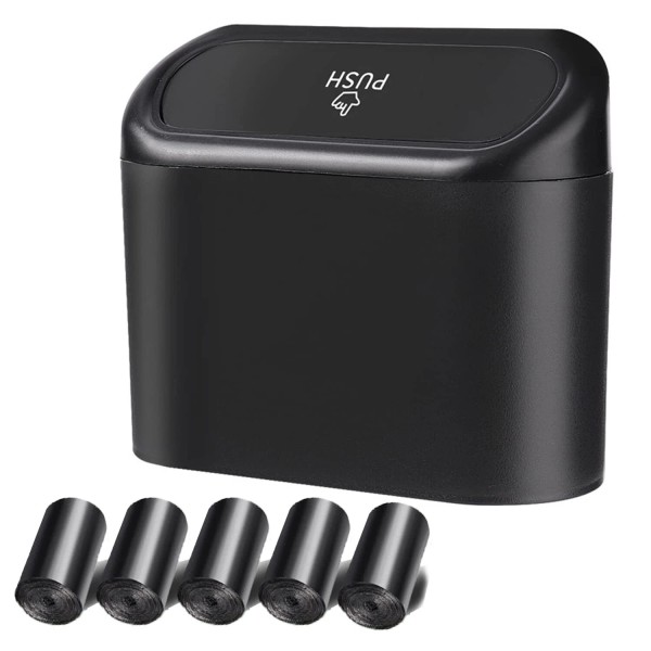 • LEAK PROOF AND CLOSED: This car trash can is made of durable, water-resistant ABS material in one piece for maximum strength, durability and longevity. The pop-up lid design makes it easy to effortlessly put your trash in and ensures that the bin is well sealed to prevent unpleasant odors from escaping into the car.