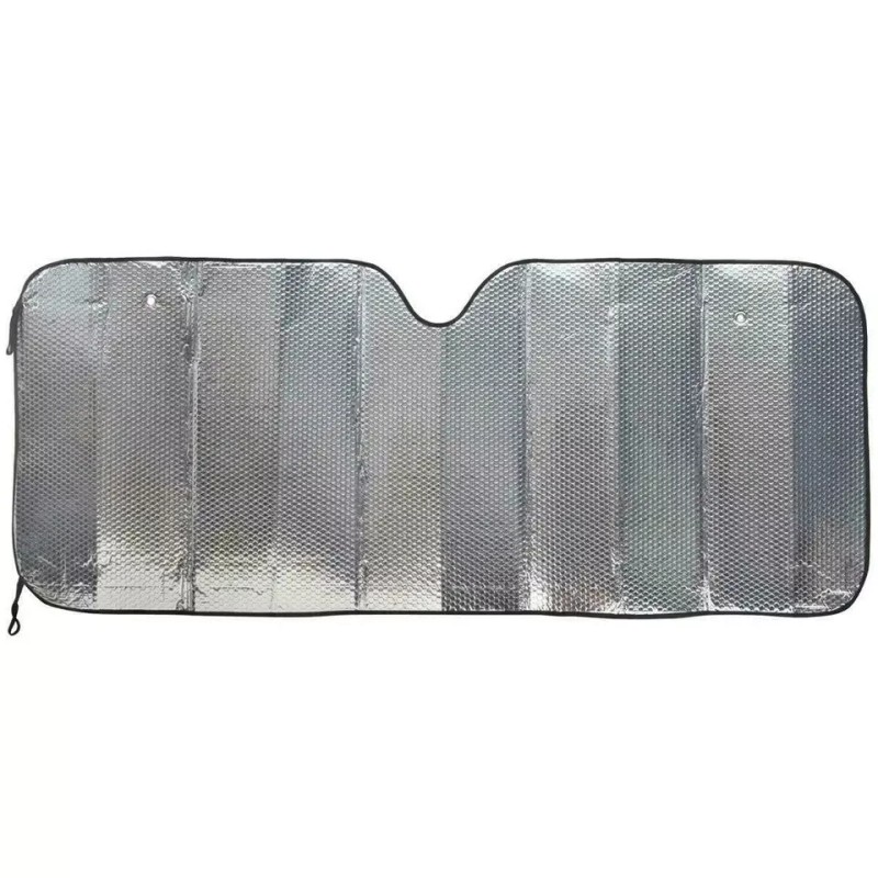 Enjoy the convenience of a reversible windshield sun shade that fits most vehicles. This dual-layer shade is made of high-quality aluminum foil material that provides excellent UV and heat shielding. Measuring 24x50 inches, it is large enough to cover the front windshield of your car, truck, or SUV. This windshield sun shade comes in a sleek silver color and includes foldable shades that can be easily placed on the front windshield. It is a perfect addition to your car's interior parts and accessories. Get yours today and protect yourself and your passengers from the harmful rays of the sun while keeping your car cool.