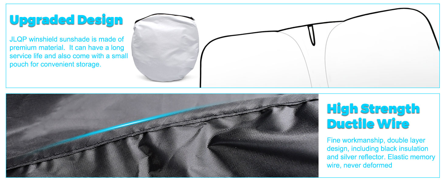- Upgraded Design —— We use a double layer of heat shield fabric to keep out the sun. The first layer is premium 210T reflective polyester and the second layer is high-quality fabric. Double insulation, and double protection.The best shade and insulation on the market.