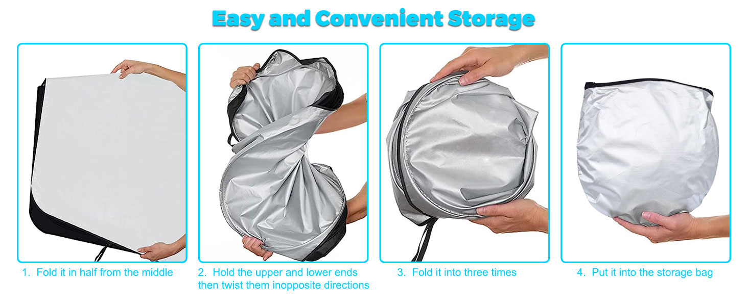 - Easy to use and store —— The shade can be easily popped up and folded in seconds for everyday use. You can easily tuck the sunshade into your door pocket.