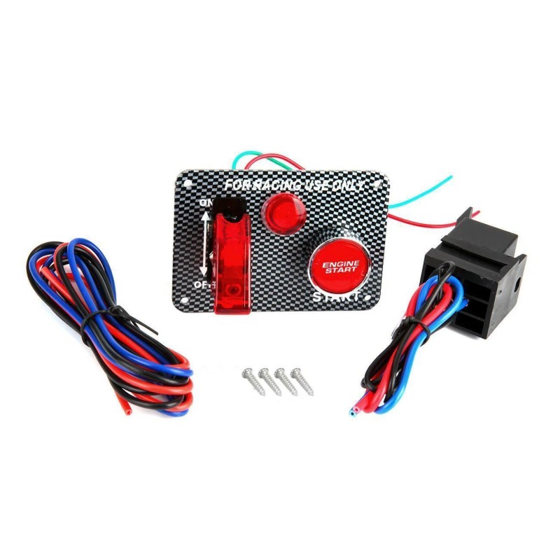 12V Carbon Ignition Switch Panel Engine Start Push Button LED Toggle Racing Car