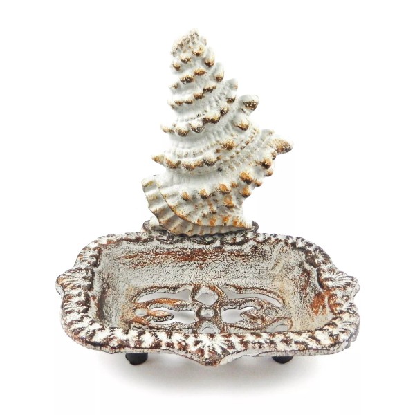 Cast Iron Conch Shell Bath Soap Dish Whitewashed Beach Nautical Antique Finish #K-182-2045