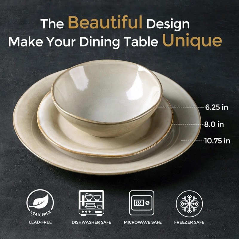 - LEAD-FREE& EAT SAFETY: Unlike other ceramic companies, our glazes are completely lead-free. The plates and bowls in this set are crafted from biodegradable materials and adorned with an all-natural glaze. After being fired at a high temperature of 2340℉ for 13 hours, these plates are guaranteed to be free from lead, cadmium, and other substances, ensuring your peace of mind and eliminating any concerns about potential health issues