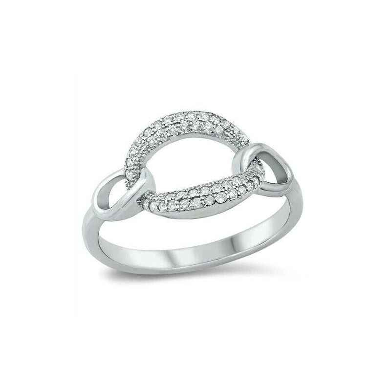Unbranded Chain Link Ring Genuine Sterling Silver 925 Clear CZ Face Height 10 mm Size 10