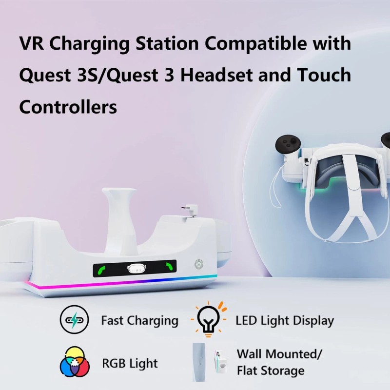 - Specially designed for meta quest 3s/quest 3: With USB-C fast charging technology, the meta quest 3s/3 earphones and controller can be fully charged in about 2-3 hours. The meta quest 3s charging dock intelligent chip provides comprehensive protection to extend battery life, including overcharge, overheat, overvoltage, overcurrent, and short-circuit protection, ensuring worry free use.