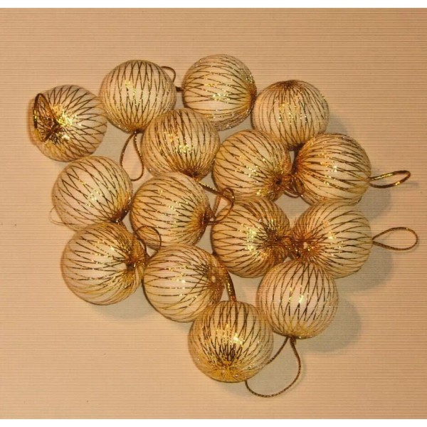 Unbranded Christmas Ornaments White Foam Mini Balls with Gold Thread Wrapped 18pcs 1"