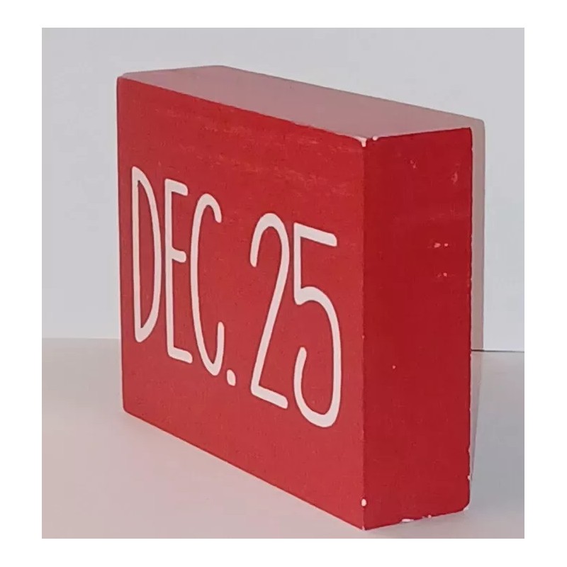 Unbranded Christmas Red Dec. 25 Wood Decoration 4 in x 3 in x 1 in