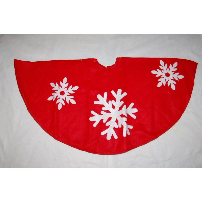 unbranded Christmas RED FELT FABRIC TREE SKIRT White Snowflakes 40" DIAMETER