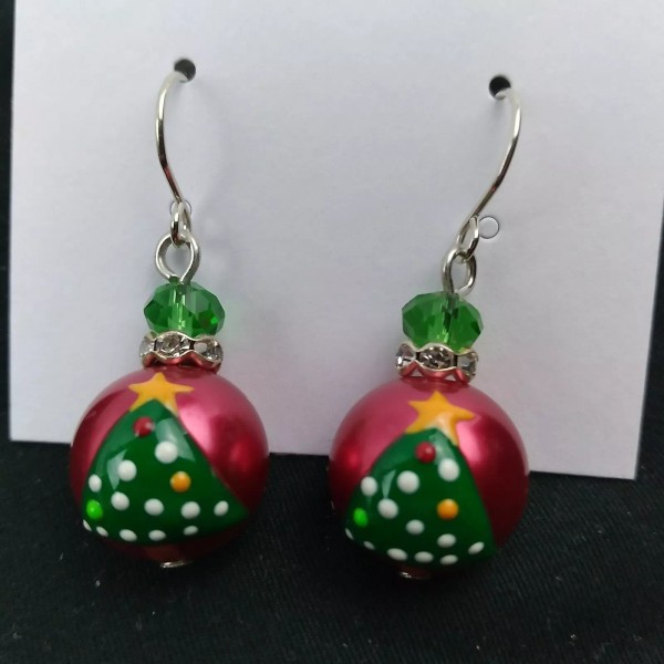 Unbranded Christmas Tree Ball Ornaments Red Green Dangle Drop Earrings Pierced NEW