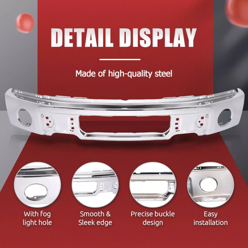 Chrome Front Steel Bumper Face Bar for Ford F150 Pickup 09-14 w/ Fog Light Hole