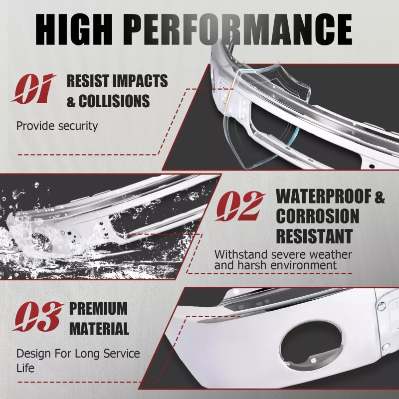 Using this front bumper with fog light holes, you can easily install fog lights to increase the safety of driving at night.
