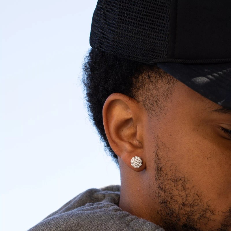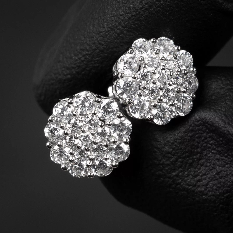 Circle Round White Gold 925 Sterling Silver Round Flower Cluster Earrings