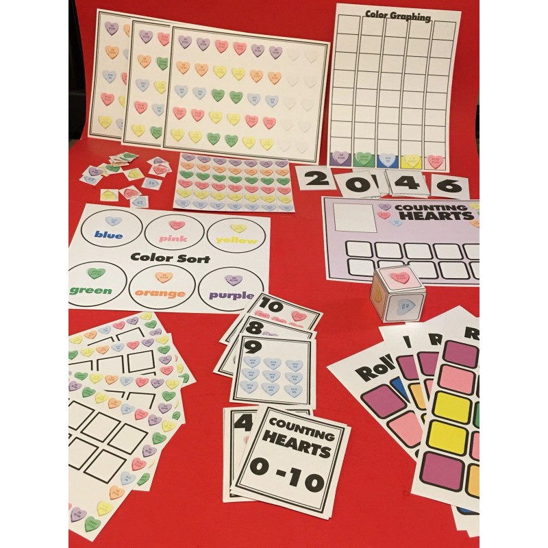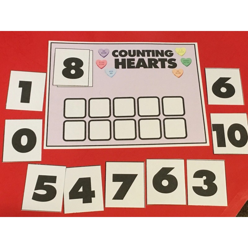 Classroom set - Counting Valentine Heart Learning Mats Bundle- Laminated - Pre school Kindergarten