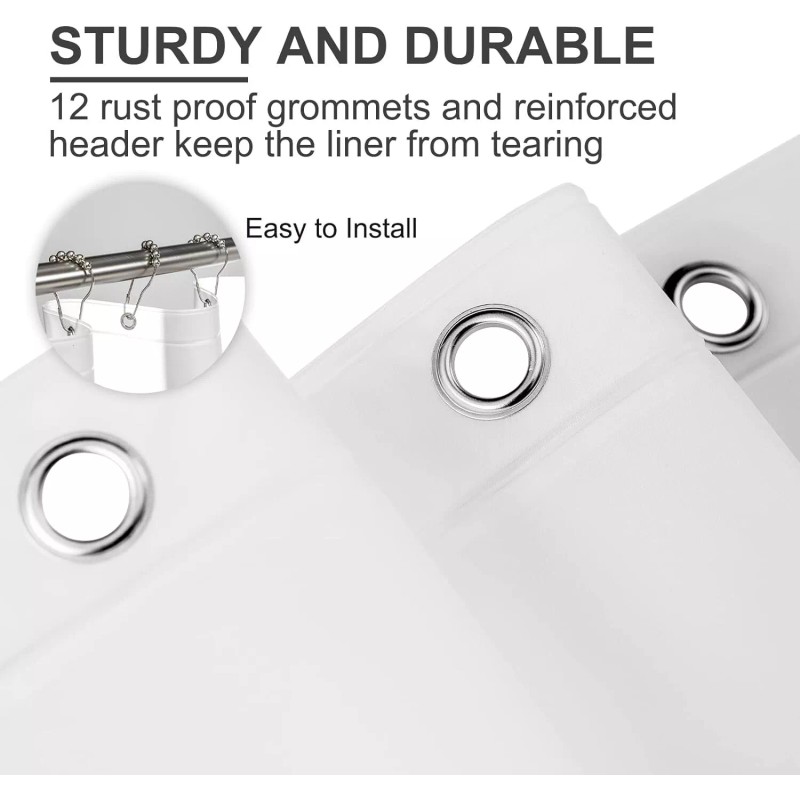 - Hassle-Free Installation - The shower liner comes with 12 rust-resistant metal grommet holes that fit most shower curtain liner hooks, making it easy to install and long-lasting.