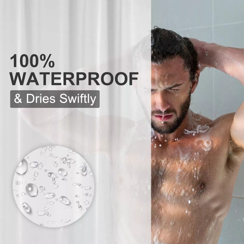 - Keep Your Bathroom Dry - Our premium PEVA shower curtain liner is waterproof, protecting your decorative shower curtain and keeping your bathroom floor dry, shampoo and soap residues never leaking out.