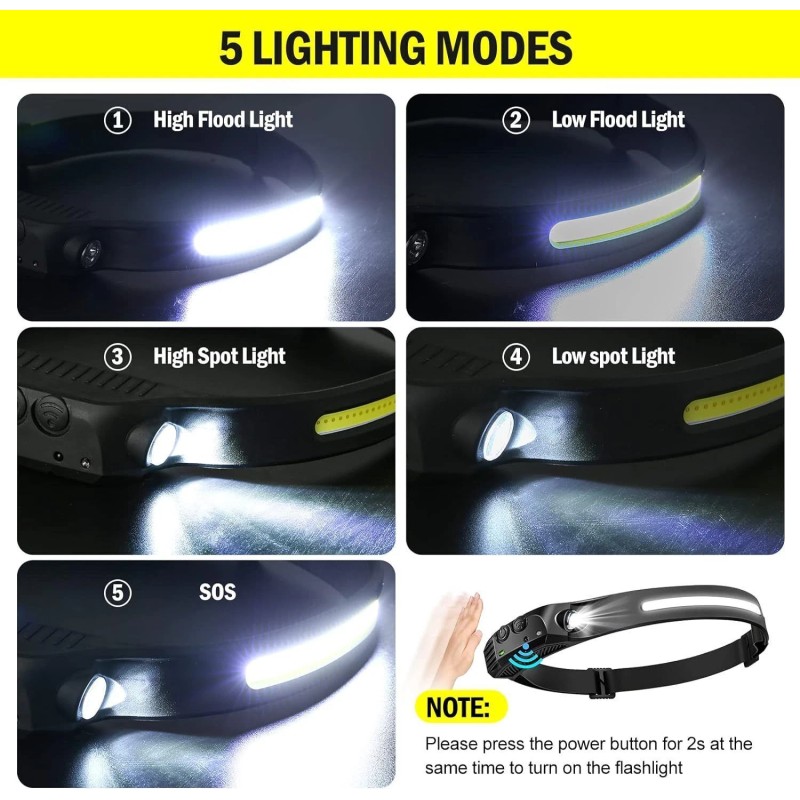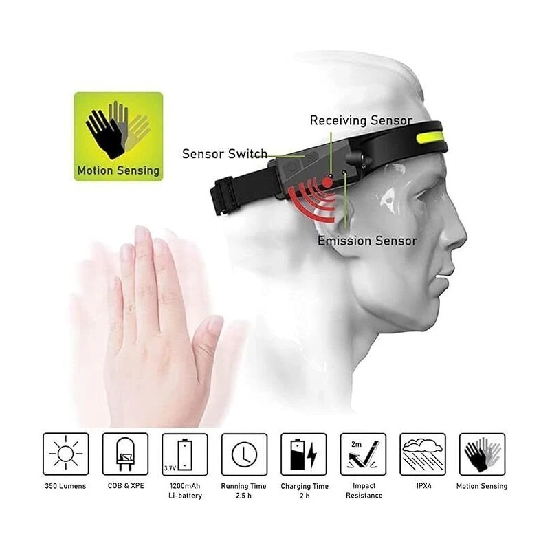 Hands Free: Thanks to the built-in motion sensor, our rechargeable headlight can be easily turned on/off by waving your hand by running the side of the headlight. First turn on the main switch, adjust to the light you need, then turn on the sensor switch for a few seconds to activate the motion detection mode. When your hands are oily or dirty or you are wearing gloves, the sensor mode will perfectly solve the trouble of needing to touch the button for you. Built-in Battery: The headlamp built-in 1200mAh rechargeable lithium battery, Type-C USB charging cable included. Fully charged the rechargeable LED head torch for 2.5 hours and use up to 6-8 hours(depends on the light mode you use). Comfortable and lightweight: The weight of the headlight is only 100 grams, so you can easily wear it on your head without pressure. Adjustable bands to satisfy people from different head circumference, it will provide the maximum comfort. Different modes of flashlights can meet the light needs of different scenes, which is one of the must -have tools for the family. Multifunctional Usages: Head Torches LED Super bright Rechargeable extremely suitable for jogging , cycling , camping,fishing head torch and other long time night activities. |