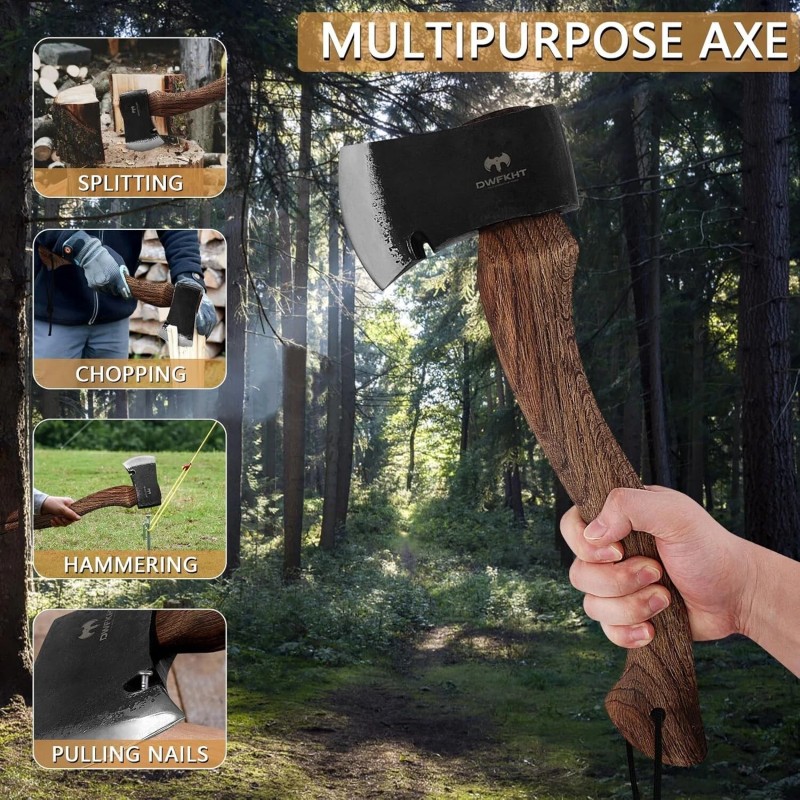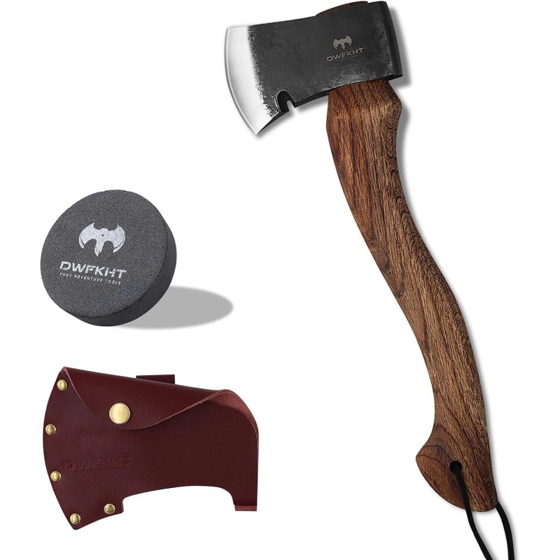 Compact 15.2" Beech Wood Axe with Leather Sheath - Perfect for Outdoor Survival