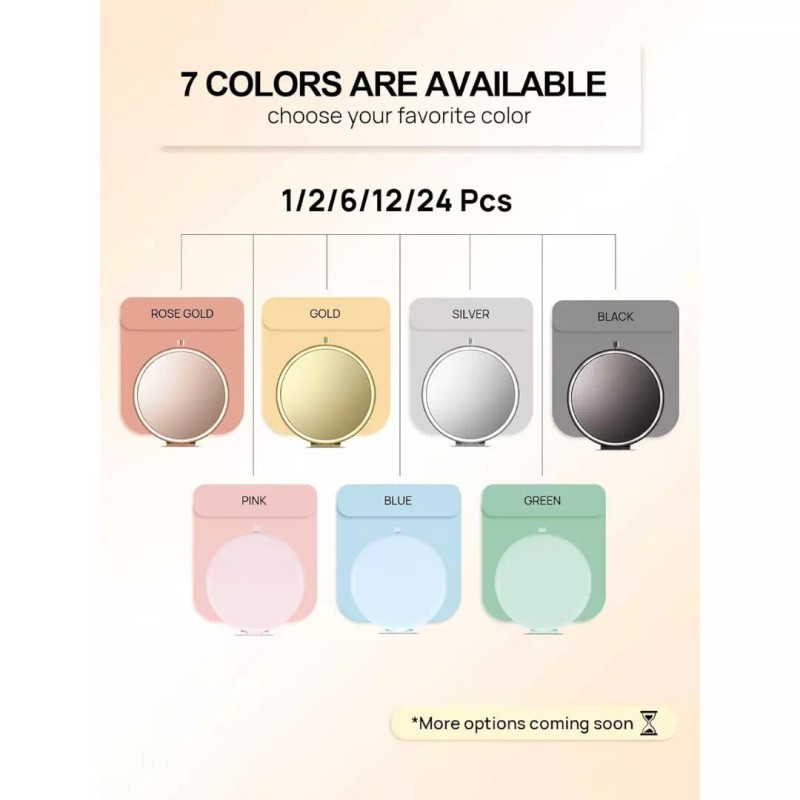 - PORTABLE SIZE & 5 COLORS AVAILABLE: Small mirror that is only 2.5 inches in diameter. Fits nicely in your bag, purse, or even your pocket—5 colors to choose from Gold, Rose Gold, Black, Pink and Silver