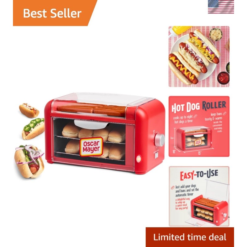 Compact Oscar Mayer Hot Dog Roller & Bun Toaster, Adjustable Timer, Red Finish